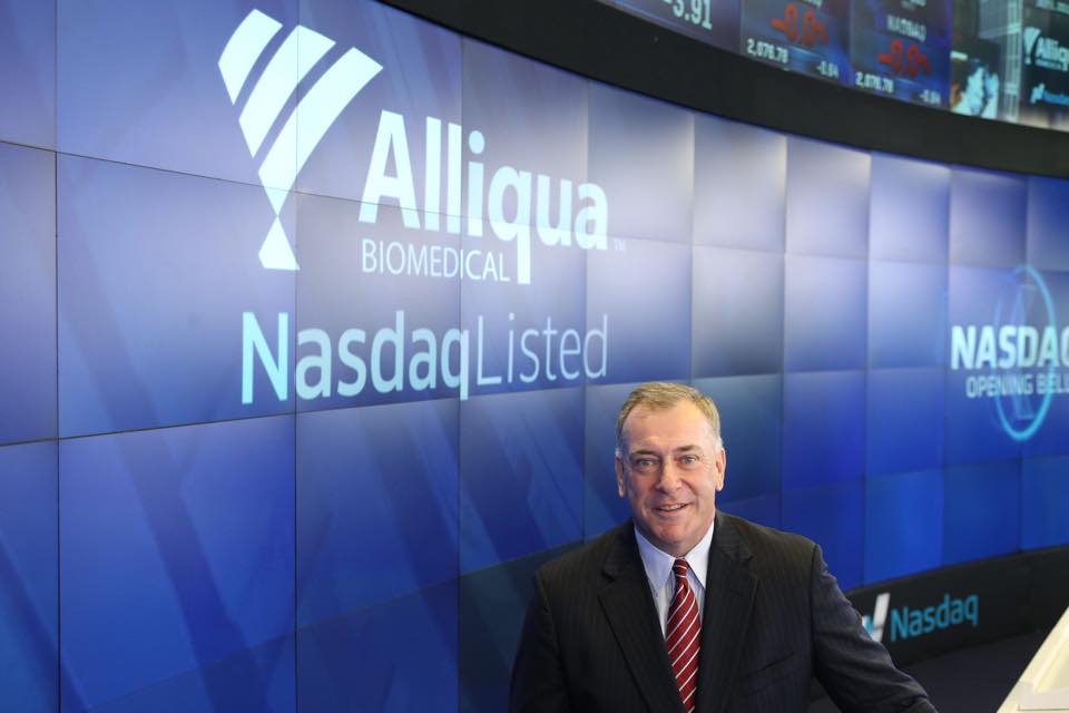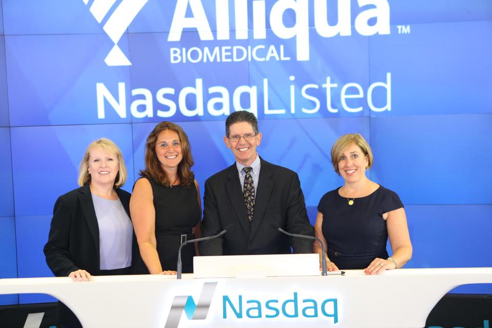 La farmacéutica Alliqua Biomedical tocó la campana de apertura de la bolsa del Nasdaq.