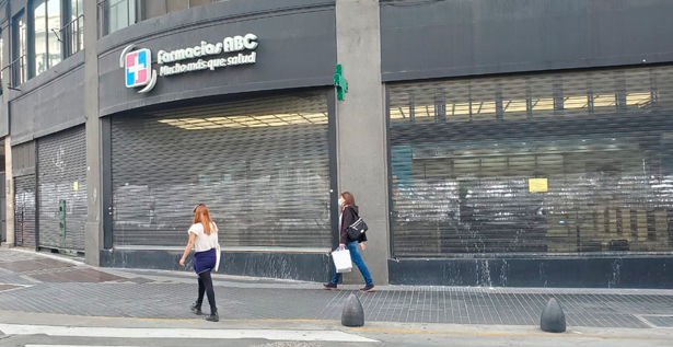La desolación del microcentro porteño avanza a ritmo sostenido y las farmacias no se constituyen en una excepción. A pesar de haber sido clasificadas como esenciales no logran eludir el deterioro de la ciudad.
