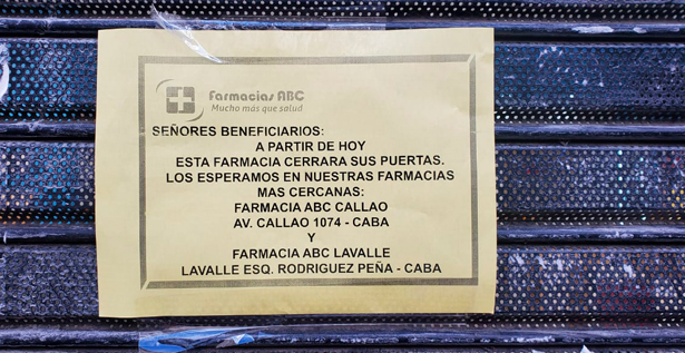 Así y según pudo retratar Pharmabiz, desde las persianas bajas del propio local se redirecciona a las farmacias operativas en avenida Callao 1074 y en Lavalle esquina Rodríguez Peña, las más próximas a esta boca.