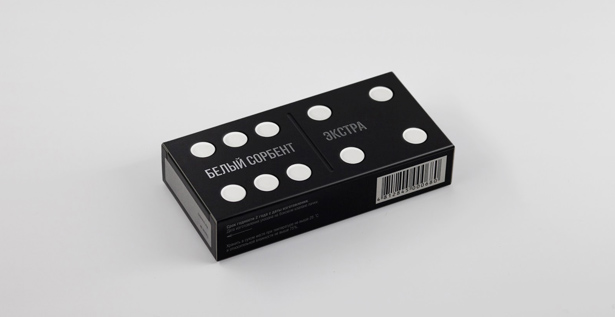 Se trata de una línea de suplementos dietarios a base de carbón. El producto se presenta en un packaging negro que tiene impreso lunares de color blanco al igual que las piezas del dominó.
