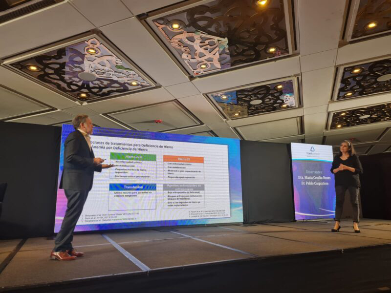 En la reunión, a la que estuvieron invitados ginecólogos y hematólogos se pasó revista a las opciones de tratamientos en caso de deficiencia de hierro. Se mencionaron cuatro opciones: el hierro oral; el hierro endovenoso; la transfusión; y los agentes estimulantes de eritropoyesis. Y haciendo foco en el hierro endovenoso se listó como sus posibles indicaciones a la deficiencia de hierro, a la anemia por deficiencia de hierro, al segundo y tercer trimestre de embarazo; y a la intolerancia al hierro oral, entre otras.