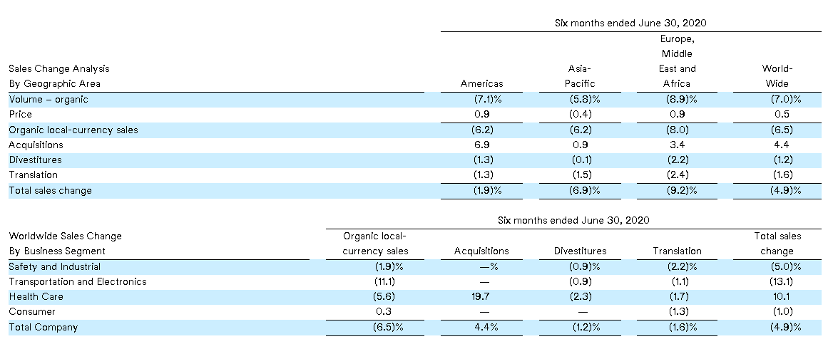 El segmento de Health Care fue el único que exhibió números en positivo, como consecuencia directa del impacto de la pandemia del coronavirus. Así la unidad trepó un 10.1% apuntalada por la venta de productos relacionados con el brote de COVID-19. En contrapartida, el negocio más afectado por las medidas de aislamiento obligatorio tomadas en la mayoría de los países fue el de Transporte y Electrónica. Dicha división se derrumbó un -13.1% en la primera mitad del año.
