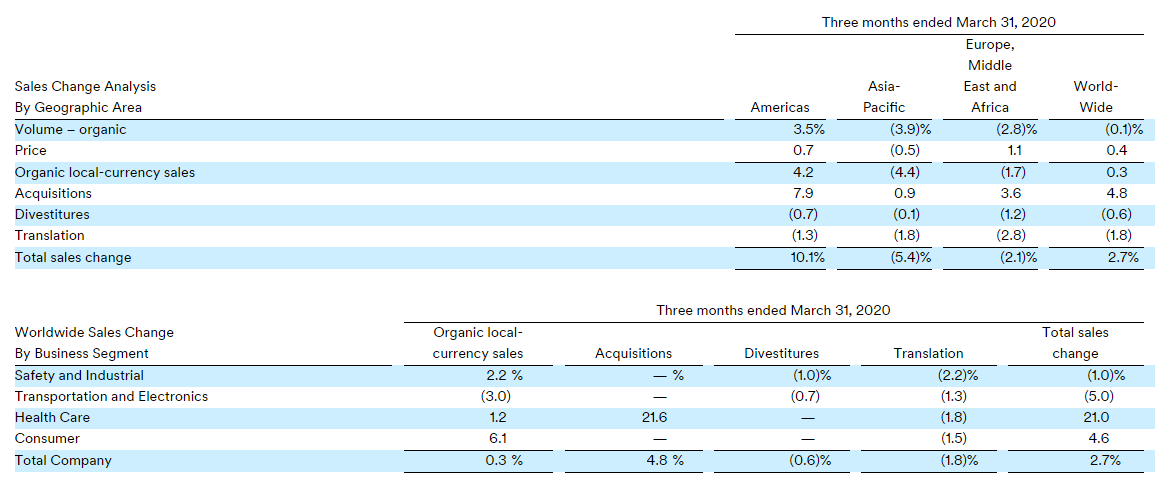 Y una de ellas es la norteamericana 3M, a pesar de haber crecido un 2.7% en ventas totales en el primer trimestre y de haber duplicado la producción de sus barbijos N95 ante el efecto COVID-19. Ver press release. Ver artículo.