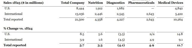 Por su parte, el negocio de Nutrición marcó una suba del 3,3%, con una facturación de u$s 4.358 millones en el semestre. Por último, la cartera de Medical Devices exhibió ingresos por u$s 10.264 millones, y una variación del 11,7%.
