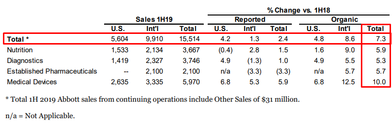 La norteamericana Abbott publicó hoy jueves 18 de julio sus resultados financieros correspondientes al primer semestre del 2019. Ver Press Release.
