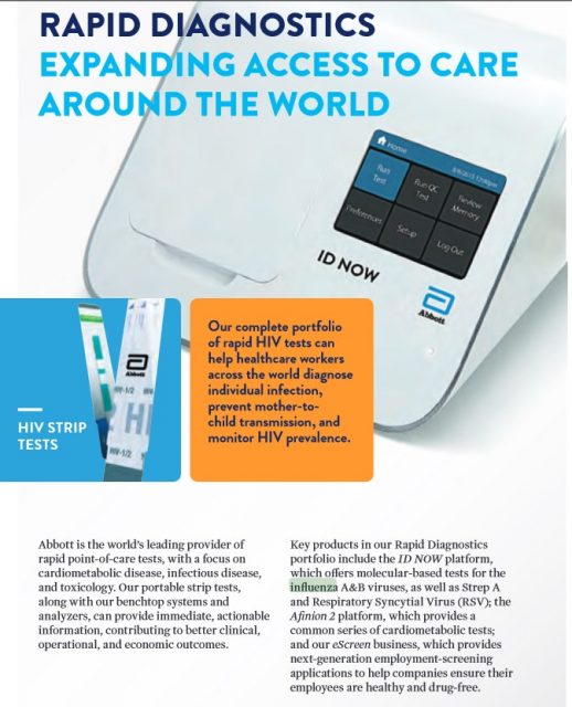 La norteamericana Abbott lanzó en la plaza local la marca ID NOW, la que le llegó desde la firma Alere adquirida en el 2016. Se trata de un test para detectar gripe A y B que compite con Cobas Liat, de la suiza Roche.