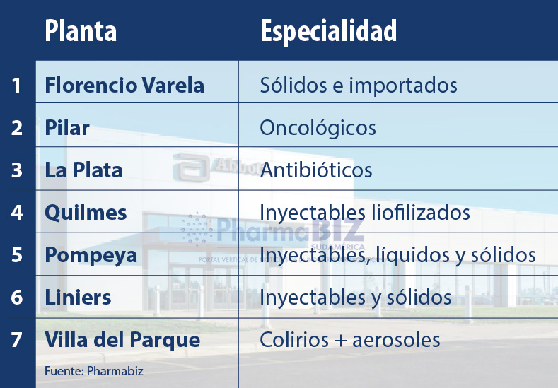 Al momento, la multi tiene operativas además otras cinco plantas que adquirió en 2014 cuando compró a Recalcine. Son la ubicada en Pilar -enfocada en oncológicos-; la de Quilmes -centrada en inyectables liofilizados-; la de Pompeya -donde fabrican inyectables, líquidos y sólidos-; la de Liniers -concentrada en inyectables y sólidos-; y la de Villa del Parque -abocada a colirios y aerosoles-. Ver infografía.