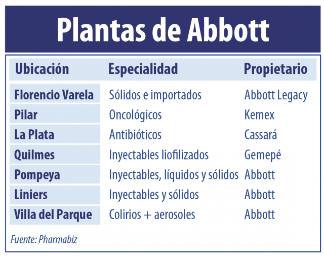 De modo que al arrancar este 2020 Abbott conserva cuatro plantas. Son tres las heredadas de Recalcine y que están ubicadas en Pompeya, donde se fabrican inyectables, líquidos y sólidos; en Liniers, que concentra inyectables y sólidos; y en Villa del Parque, la ex Atlas enfocada en colirios y aerosoles. Todas ellas representan apenas un valor inmobiliario en función de la antigüedad de la infraestructura. Sólo se supone que continuará en pie su original sitio corporativo de la bonaerense Florencio Varela, el que milagrosamente sigue operativo en Sudamérica.
