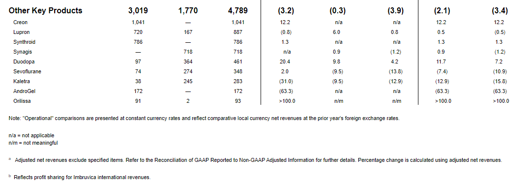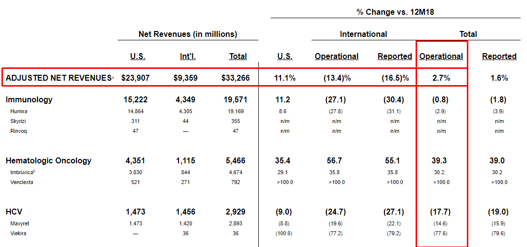 La norte americana Abbvie publicó sus resultados financieros correspondientes al 2019. Ver press release.