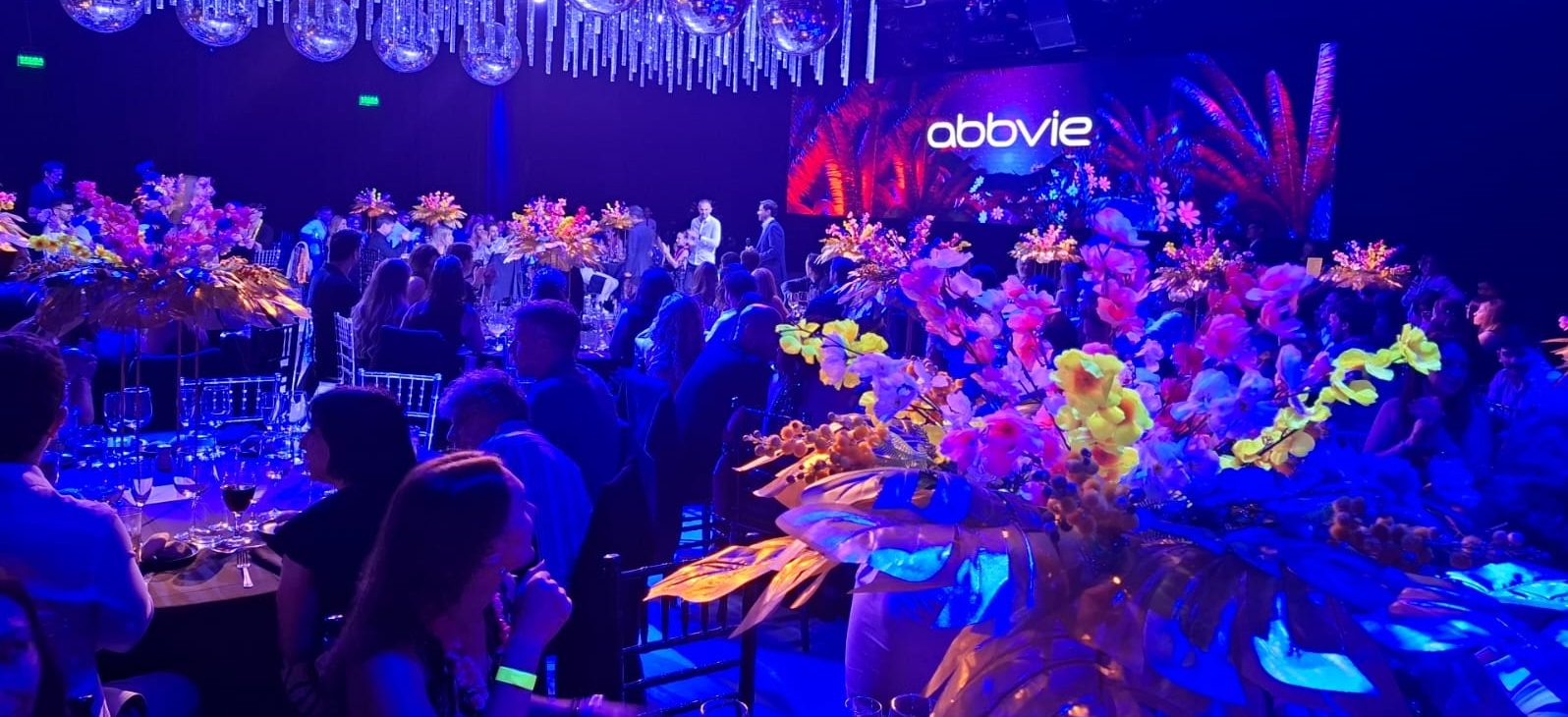 La norteamericana Abbvie festejó este miércoles 3 de diciembre en Costa Salguero. El evento nocturno contó con un mega show central, y los empleados fueron recibidos al ritmo del carnaval y bajo una temática de tono tropical.