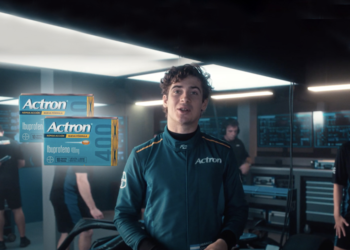 Los alemanes de Bayer convocaron al automovilista Franco Colapinto para su nuevo spot de Actron. La compañía apeló a la emergente celebrity del deporte en pos de reposicionar su analgésico a base de ibuprofeno.