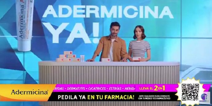 «Lo que le pasa a tu piel se pasa ya con Adermicina», dice el nuevo aviso de la marca del nacional Elea. Al estilo «Llame ya», Gonzalo Heredia y Natalia Oreiro son las caras de la campaña.
