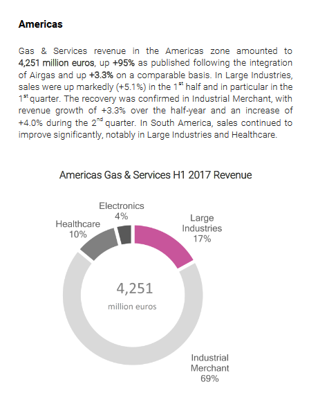 El grupo francés de gas industrial, Air Liquide, publicó sus resultados semestrales de la primera mitad del 2017. Ver press release.