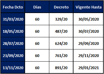 Las compañías quedarán vedadas de despedir personal por un plazo de 60 días más, hasta el viernes 29 de enero del 2021. El decreto anterior, el 761, tenía vigencia hasta el domingo 29 de este mes. Ver artículo.
