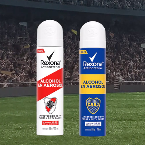 La angloneerlandesa Unilever volvió a sacar partido del clásico duelo del fútbol local: Boca vs River. La multi que ya tenía una edición limitada de Axe personalizada con los colores de ambos clubes, ahora siguiendo el pulso del calendario ploteó sus alcoholes en aerosol los que se comercializan bajo su marca Rexona.