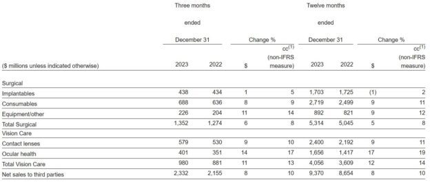 Su otra unidad, Vision Care, aportó a la caja de la helvética u$s 4.056 millones, un 14% por encima de los ingresos registrados en 2022 teniendo en cuenta el impacto de los tipos de cambio. Aquí Lentes de Contacto registró un alza del 11% a u$s 2.400 millones, en tanto que Salud Ocular avanzó un 19% con una facturación de u$s 1.656 millones.