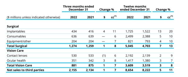 La suiza Alcon, especializada en el desarrollo de productos para el cuidado y la salud ocular, presentó un salto en su facturación del 11% durante su año fiscal 2022. Sus dos unidades, Surgical y Vision Care, presentaron un crecimiento sostenido a pesar de las presiones inflacionarias globales, obstáculos en la cadena de suministro y la fortaleza del dólar estadounidense.