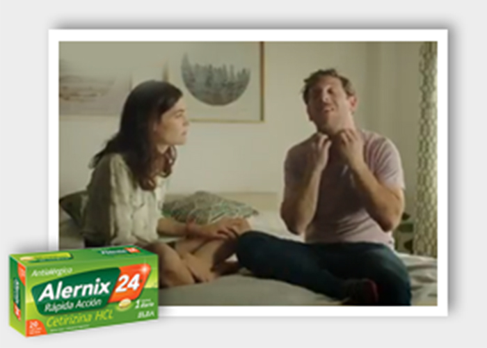 Aunque en el caso de la pareja, el médico aparece por debajo de la cama recomendando el producto para tratar la rinitis alérgica, tornando inverosímil la situación.