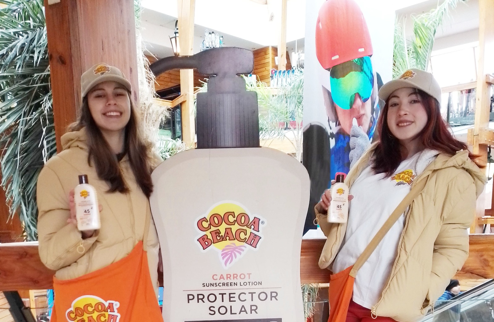 El boom del skin care desestacionalizó el uso de protectores solares, y ahora las marcas del segmento lanzan campañas durante todo el año para posicionar sus productos. Un ejemplo de ello es Algabo, que instaló un stand de Cocoa Beach en el Cerro Catedral, en Bariloche.