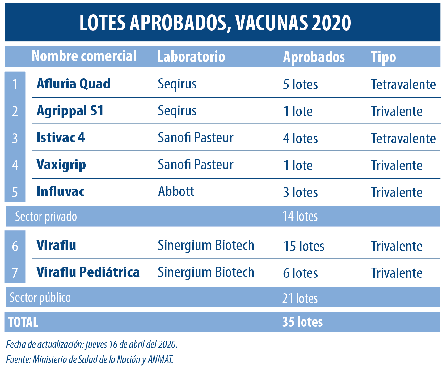 Para el ámbito privado además están autorizadas la australiana Seqirus, que fue la primera en dar el golpe y que tiene cinco partidas -cerca de 1.1 millones de dosis- de su tetravalente Afluria Quad y una de su trivalente Agrippal S1. También la francesa Sanofi que había llegado retrasada con cuatro lotes -360 mil dosis- de su tetravalente Istivac 4; y uno de su trivalente Vaxigrip.