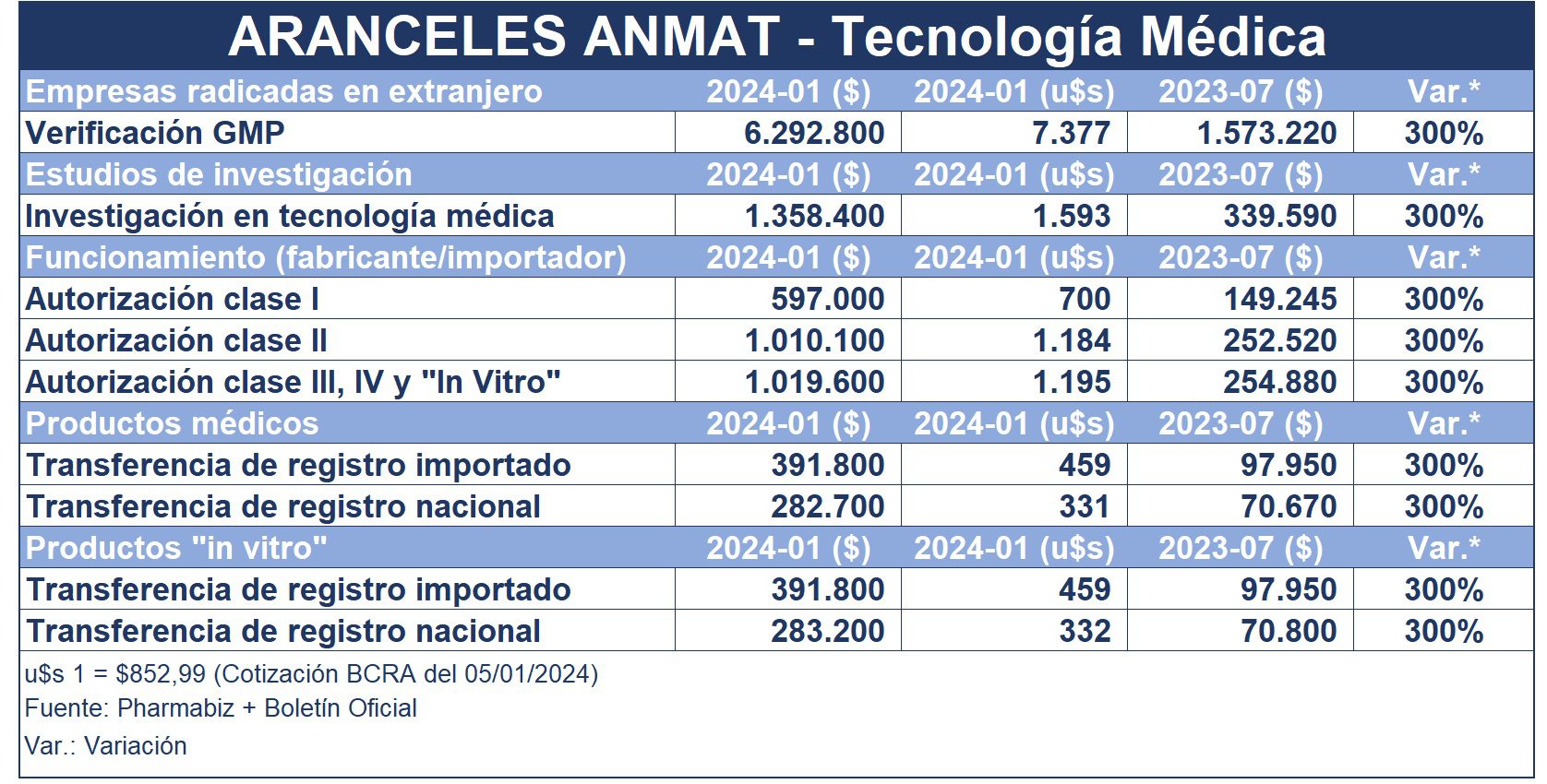 Desde su asunción el pasado 10 de diciembre, el presidente Javier Milei se propuso iniciar un paulatino sinceramiento de precios en la economía local. En esta dirección, ahora le tocó el turno a la tecnología médica, uno de los segmentos que más avanza en el sector de farma. Desde este lunes, la ANMAT cuadriplicó los montos de los aranceles de distintas tramitaciones relacionadas con productos médicos respecto de los valores que regían desde julio pasado.