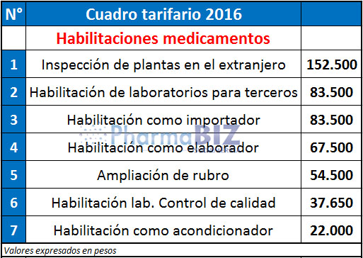 Para habilitarse como elaborador de medicamentos, la suma requerida es de $67.500 (u$s 4.2 mil). Aunque, al momento de decidir una ampliación de rubro la inversión exigida será de $54.500 (u$s 3.4 mil). Y si la necesidad es la habilitación de un laboratorio para control de calidad se deberá erogar $37.650 (u$s 2.3 mil).