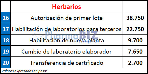 El costo para autorizar un primer lote de productos herbarios es de $38.750 (u$s 2.4 mil). Y los fabricantes de este tipo de fórmulas que necesiten habilitarse como laboratorios terceristas deberán abonar $22.750 (u$s 1.4 mil).