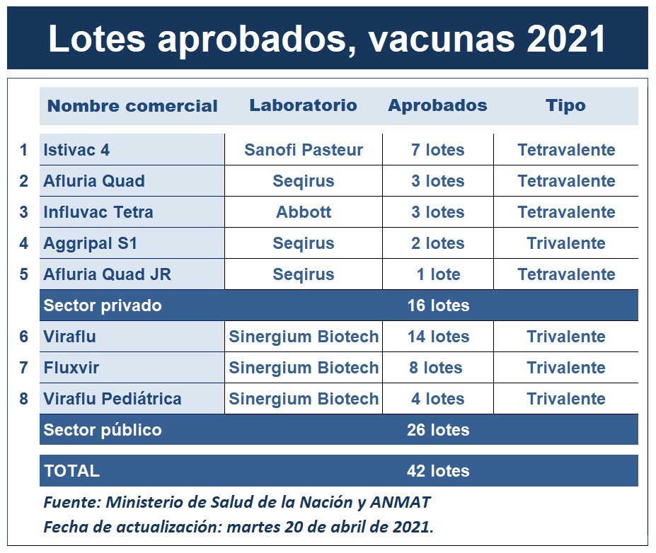 Una semana después de su última actualización, se incorporaron más lotes al listado de productos destinados a la vacunación antigripal 2021. Ver listado al 20/04.