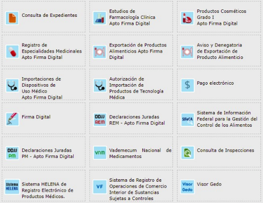 Hasta el momento, la ANMAT tiene disponibles un total de 24 trámites digitalizados los que se pueden realizar a través de la plataforma TAD -trámites a distancia-. Resaltan por caso el de impo y expo de sustancias sujetas a control especial; y el de importación de medicamentos bajo el Régimen de Acceso de Excepción a Medicamentos (RAEM), entre otros. Ver listado Ver artículo