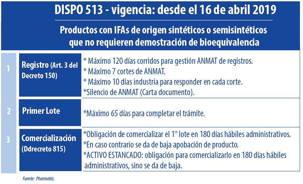 Tal como había detallado Pharmabiz en un artículo propio publicado en enero cuando se emitió la disposición, otro de los cambios refiere a la etapa de aprobación del primer lote. El organismo fijó un máximo de 65 días para completar el trámite total de autorización de un primer lote. En este punto y luego de avalado el lote base, los laboratorios tendrán un período máximo de 180 días hábiles administrativos para llevarlo a la etapa de la comercialización.