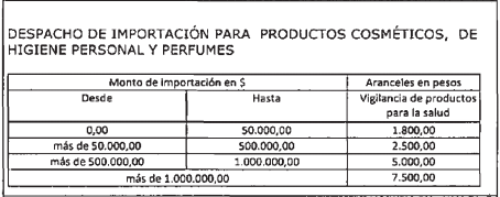 Además, la habilitación como importador de productos cosméticos de higiene personal y perfumes tendrá un precio de $29.650 (u$s 3287); la habilitación como importador de productos de higiene oral de uso odontológico saldrá $29.650 (u$s 3287), y la autorización de productos de higiene oral de uso odontológico importado costará $8.800 (u$s 975).