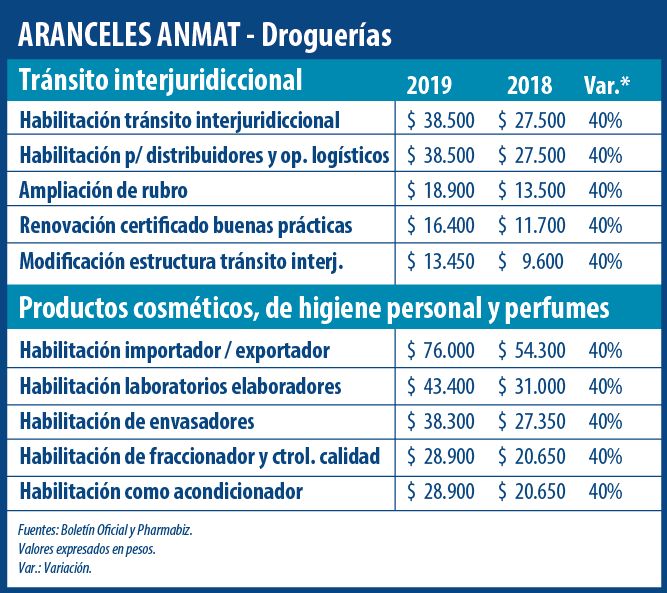 Las droguerías que siempre ponen sobre la mesa sus acotados niveles de rentabilidad ahora tuvieron que agendar los nuevos costos del 2019. La ANMAT les incrementó un 40% los precios de los trámites que deberán realizar ante el organismo.