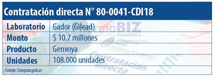 El gobierno desembolsará más de $10.7 millones (u$s 360.7 mil) para la adquisición del antirretroviral Genvoya. Se trata de un producto de Gilead que es comercializado en el país por el nacional Gador.
