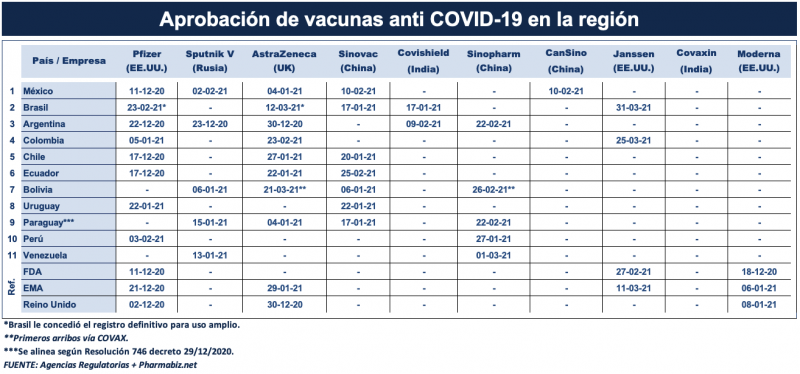 Se trata de la quinta aprobación que concede la agencia regulatoria de Brasil. Las primeras en recibir el visto bueno fueron la vacuna china de Sinovac; y la india Covishield, ambas respaldadas el 17 de enero. Un mes después le llegó el OK a la vacuna del binomio Pfizer/BioNTech; y en marzo a la vacuna de la británica AstraZeneca en conjunto con la Universidad de Oxford. Tanto a la de Pfizer como a la de AZ, la ANVISA les otorgó el registro definitivo para uso amplio.