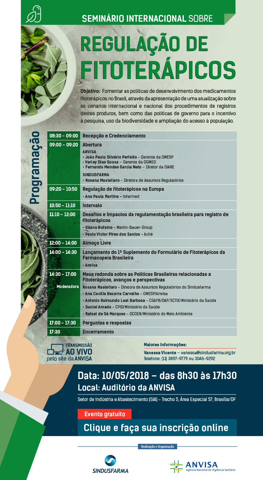 La ANVISA y SINDUSFARMA realizarán un seminario sobre la regulación de los fitoterápicos. El encuentro tiene por objetivo presentar un panorama de los procedimientos de registro vigentes tanto en Brasil como a nivel internacional.