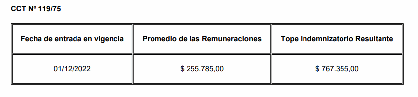 Según lo establece el artículo 245 de la Ley de Contrato de Trabajo, la cartera laboral debe publicar los promedios de remuneraciones sobre los cuales se fijan los topes indemnizatorios cada vez que se firma un acuerdo salarial.