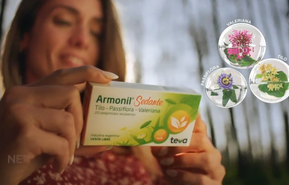 La israelí Teva contrató a la periodista Gisela Busaniche para generar un ambiente de entrevista en su nueva saga de comerciales. La producción fue para su sedante Armonil, uno de los pocos medicamentos de venta libre de la compañía enfocada en genéricos.