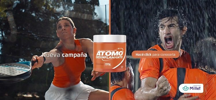 El nacional Millet presentó un nuevo spot para su marca Atomo Desinflamante. La compañía del grupo Roemmers apunta a posicionar su nuevo concepto: «Tu impulso es más fuerte que el dolor».