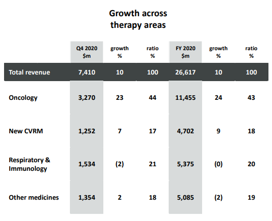 Bajo la tutela de su CEO global Pascal Soriot, la británica AZ dijo que creció un 10% en ventas durante 2020 con ingresos de u$s 26.617 millones. La suba estuvo impulsada principalmente por la performance de sus segmentos de Nuevos Medicamentos y Oncología.