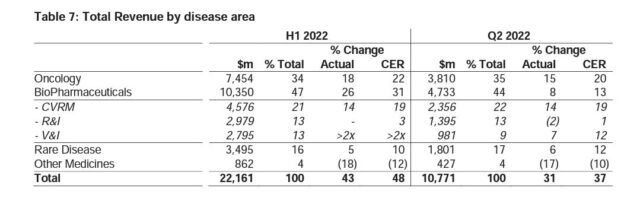 La facturación de la británica AstraZeneca despuntó un 48% en el primer semestre de este 2022 medida a moneda constante. La multi reportó ventas por u$s 22.161 millones a nivel global, impulsada en buena medida por la performance de su cartera de Oncología. Ver Press Release.
