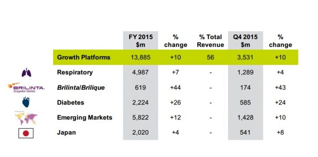 La anglosueca AZ anunció un crecimiento del 1% para sus resultados 2015 en comparación con el año 2014. Ver reporte