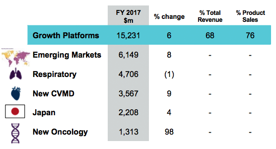 AstraZeneca tuvo resultados desalentadores durante el 2017. La compañía cayó un -2% en ventas globales, aunque sus esperanzas están puestas en la «Nueva Ocología, la que registró un crecimiento del 98%.
