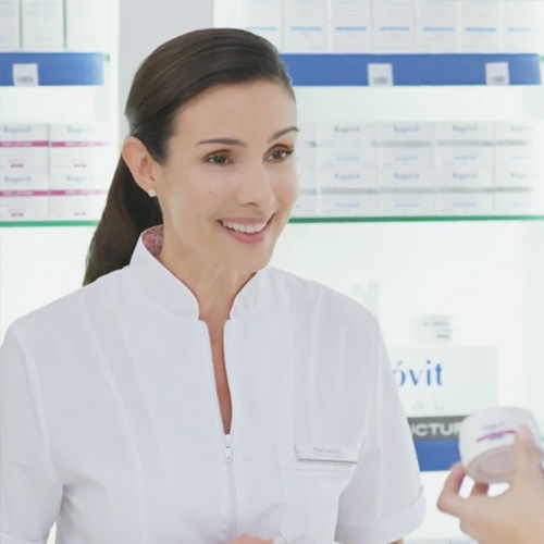 En el spot, Bagóvit facial Pro Lifting está detrás de la línea de mostrador de dermocosmética y en ese espacio es identificado por la clienta que busca un producto de calidad, pero a un precio accesible. Es ahí cuando la experta refuerza el consejo al mostrar el respaldo y afirmar «al ser del laboratorio Bagó la piden mucho».