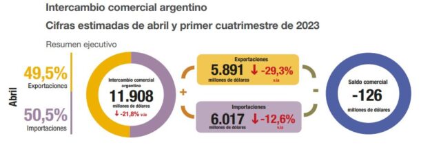 El INDEC dio a conocer el informe de intercambio comercial correspondiente a abril de este 2023. Según el documento la balanza de farma exhibió un déficit de u$s -128 millones, un -22,0% por debajo del rojo de u$s -164 millones que había arrojado marzo.