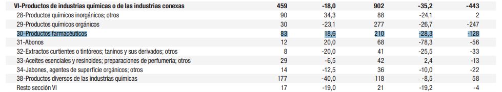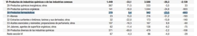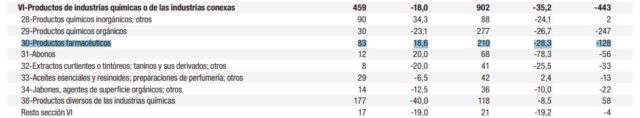 Por su parte, los productos farmacéuticos alcanzaron exportaciones por un valor de u$s 83 millones en abril, lo que implica un ascenso interanual del 18,6 %. En tanto, las importaciones exhibieron una caída del -28,3%, con un monto total de u$s 210 millones. De esta manera el saldo final mostró un resultado negativo de u$s -128 millones.