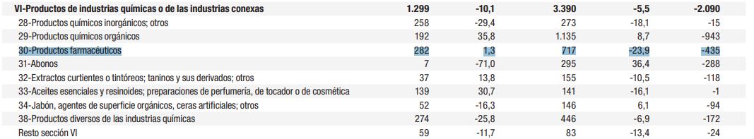 Por su parte, los productos farmacéuticos alcanzaron exportaciones por un valor de u$s 77 millones en abril, lo que implica un descenso interanual del -6,1%. En tanto, las importaciones exhibieron una caída del -2,6%, con un monto total de u$s 205 millones. De esta manera el saldo final mostró un resultado negativo de u$s -128 millones.