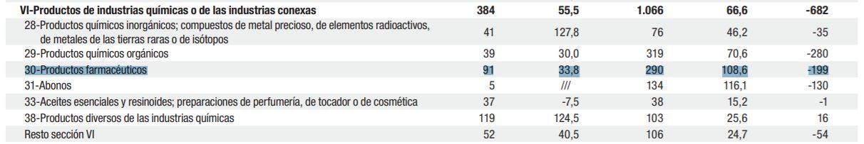 El segmento de productos farmacéuticos finalizó diciembre con exportaciones por u$s 91 millones. Esto representa una suba del 33,8% respecto de mismo período del año previo. En tanto, según el análisis elaborado por el instituto que encabeza Marco Lavagna, las importaciones registraron un crecimiento mayor, el que se ubicó en 108,6% y llevó el monto total a u$s 290 millones.