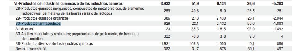 Durante los tres primeros trimestres de 2021, las exportaciones de productos farmacéuticos totalizaron u$s 629 millones, con un alza del 22.1% respecto de igual periodo del año pasado. Por su parte, las importaciones crecieron a mayor ritmo, un 50.0% a u$s 2.432 millones. De esta manera, la balanza del sector arrojó un rojo acumulado de u$s -1.803 millones.