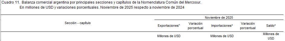 En el onceavo mes del año las exportaciones totalizaron u$s 8.096 millones, lo que representó una suba interanual del 24,1%. El informe detalla que este crecimiento fue impulsado por un incremento del 28% en las cantidades exportadas. En cambio, los precios disminuyeron -3%.