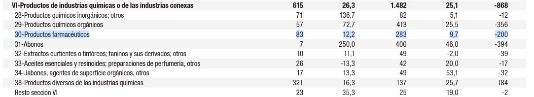 El sector de productos farmacéuticos registró exportaciones por un valor de u$s 83 millones en el sexto mes del año. Esto representa una suba del 12,2% respecto de mismo período del año previo. Asimismo, según el análisis elaborado por el instituto que encabeza Marco Lavagna, las importaciones de farma lograron un crecimiento del 9,7%, con un monto total de u$s 283 millones.